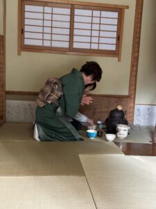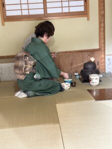 当館では16時までにご到着のお客様には、お茶室で「ウェルカム抹茶」を点てさせていただいており、ご希望であれば全員「お抹茶点て体験」をご堪能できます!